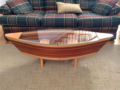 Canoe shaped coffee table, coffee table, furniture, living room decor, rustic charm, nature-inspired, unique design, statement piece, conversation starter, focal point, outdoor enthusiast, handmade, natural wood finish, functional, storage compartment, hidden storage, organizing space, high-quality materials, durable finish, personal preference, centerpiece, investment.